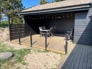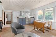 Sommerhusets unikke arkitektur og charmerende indretning adskiller det fra de typiske ferieboliger. Her finder du en original og hyggelig atmosfære fyldt med lækre detaljer. Det åbne køkken har gasblus og en lille spiseplads, mens stuen byder på en væghængt brændeovn, som spreder varme og hygge. Med loft til kip og lysindfald fra tre verdenshjørner, er stuen et ideelt sted for både måltider og afslapning. Huset rummer også et badeværelse med brus, to soveværelser og et praktisk depotrum.