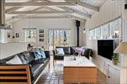 Når du træder ind i sommerhuset, bliver du straks mødt af en lys og rummelig atmosfære. De store vinduespartier lader dagslyset strømme ind og giver en fornemmelse af, at naturen udenfor bliver en del af huset. Stuen byder på komfortable møbler, hvor du kan slappe af med en god bog eller nyde en aften foran tv’et. Køkkenet, som er åbent mod stuen, skaber en hyggelig ramme for fælles madlavning og måltider, og de indbydende soveværelser sikrer en god nats søvn, så I kan vågne op veludhvilede og klar til en ny dag fyldt med oplevelser.