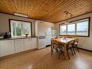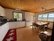 Sommerhuset Frövettern er opført i 1969 og består af et hovedhus og et gæstehus. Boligarealet er cirka 95 m² i hovedhuset og cirka 15 m² i gæstehuset. I hovedhuset er der to soveværelser – ét med dobbeltseng og ét med køjeseng. Gæstehuset har to yderligere soveværelser, hvoraf det ene har en dobbeltseng, og det andet har to enkeltsenge samt en sovesofa. Udlejer ønsker en maksimal belægning på 8 personer. Køkkenet er rummeligt og udstyret med elkomfur, ovn, køle- og fryseskab, mikrobølgeovn og kaffemaskine. Spisebordet i køkkenet har plads til 6 personer. Fra stuen har du en fantastisk panoramaudsigt over søen Frövettern. På kølige dage kan du tænde op i pejsen og nyde dine måltider ved det store spisebord i stuen med plads til 8 personer. Til underholdning er der også et billardbord. Badeværelset har bruser, rindende varmt vand, vaskemaskine og toilet. Udendørs finder du havemøbler på den brede veranda med udsigt til søen. Der er grill, og du kan parkere bilen lige ved huset.
