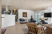 ”New-Yorker” polerede betongulve møder jer når I træder ind i dette hyggelige hus der er både særdeles hyggeligt, men også meget smagfuldt indrettet. Her kan I nyde feriens ro. Sæt jer omkring det runde spisebord der står i det store opholdsrum der ligger i delvis åben forbindelse med køkkenet, det runde spisebord opfordrer til hyggelige stunder, enten over et lækkert måltid mad, et spil kort eller hvor samtalen bare flyder, grinene er mange og jokesne flyver gennem luften i en strid strøm. Når I trænger til en stille stund, kan I sætte jer ved en af de lækre stole der står ved brændeovnen og nyde den behagelige varme og hyggelige knitren der spreder sig i rummet. For familiens vandhunde er der er en lækker pool som opfordrer til leg og vandpjask.