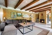 Nyd den fantastiske udsigt ud af det store vinduesparti ved spisebordet – her kan I nyde en lækker aftensmad eller spille sjove og finurlige brætspil, og med det dejlige lysindfald kan I nyde solens stråler alle de lyse timer. De rå murstensvægge skaber en helt utrolig og altoverskyggende følelse af hygge og tid til nærvær – her kan hele familien hygge sig, og der er noget for alle. Trænger I til et velfortjent hvil, kan I læne jer tilbage i sofaen foran brændeovnen og nyde den behagelige varme, der strømmer ud i rummet. Køkkenet lægger op til den langsomme og hyggelige madlavning, hvor tingene gerne må tage god tid. Huset er desuden hundevenligt, så også familiens firbenede medlemmer kan nyde ferien.