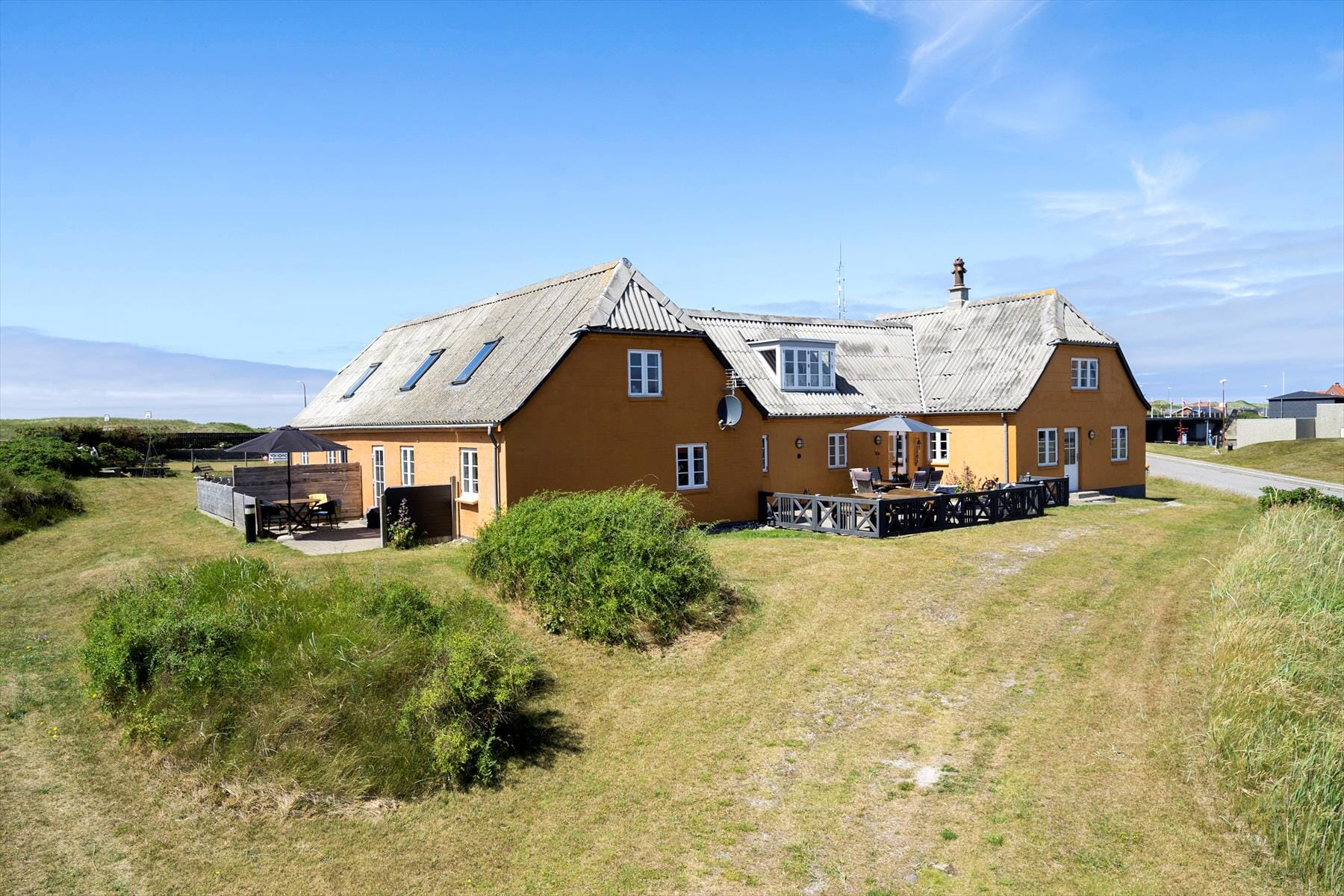 Træd ud på den dejlige sydvendte terrasse, hvor solen skinner hele dagen og giver jer den perfekte ramme til afslapning og hygge. Her kan I nyde et måltid al fresco, læse en god bog, eller blot nyde den friske luft i fulde drag. Terrassen er ideel til både morgenkaffe og solrige eftermiddage. Som ekstra luksus finder I en praktisk udendørs vask og et bord, som gør det nemt at tilberede måltider, rense fisk eller bare holde terrassen pæn og ryddelig. Det er det perfekte sted at samles med familie og venner, hvor naturen og komforten går op i en højere enhed.