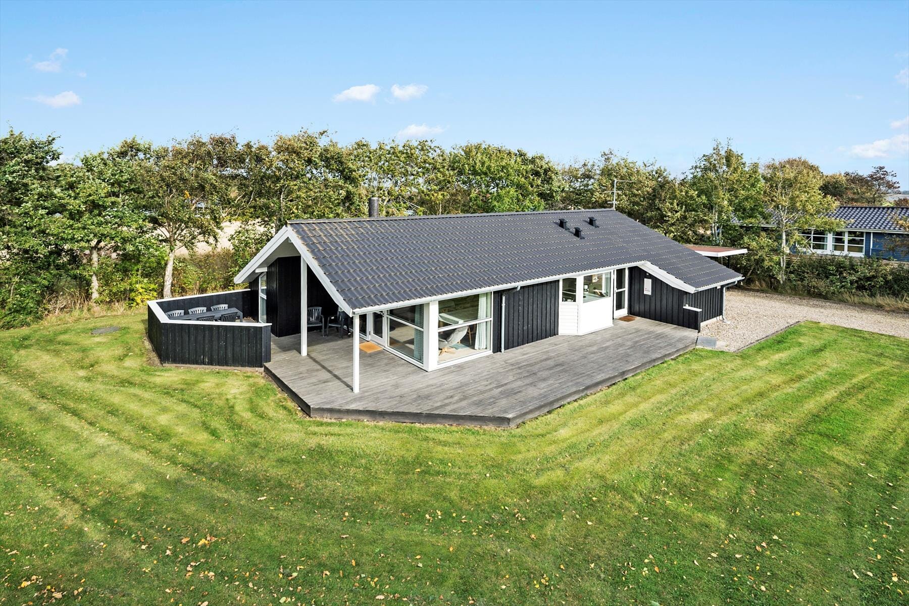 Huset ligger på en stor, lukket grund omgivet af høje træer, der skaber en fredelig og ugenert oase. Her er plads til leg, boldspil og afslapning – slå jer ned på terrassen i solen, tænd op i grillen og nyd aftenen ved den udendørs pejs. De syd- og vestvendte terrasser giver læ og perfekt udsyn til solnedgangen, mens haven indbyder til både aktivitet og ren feriehygge.