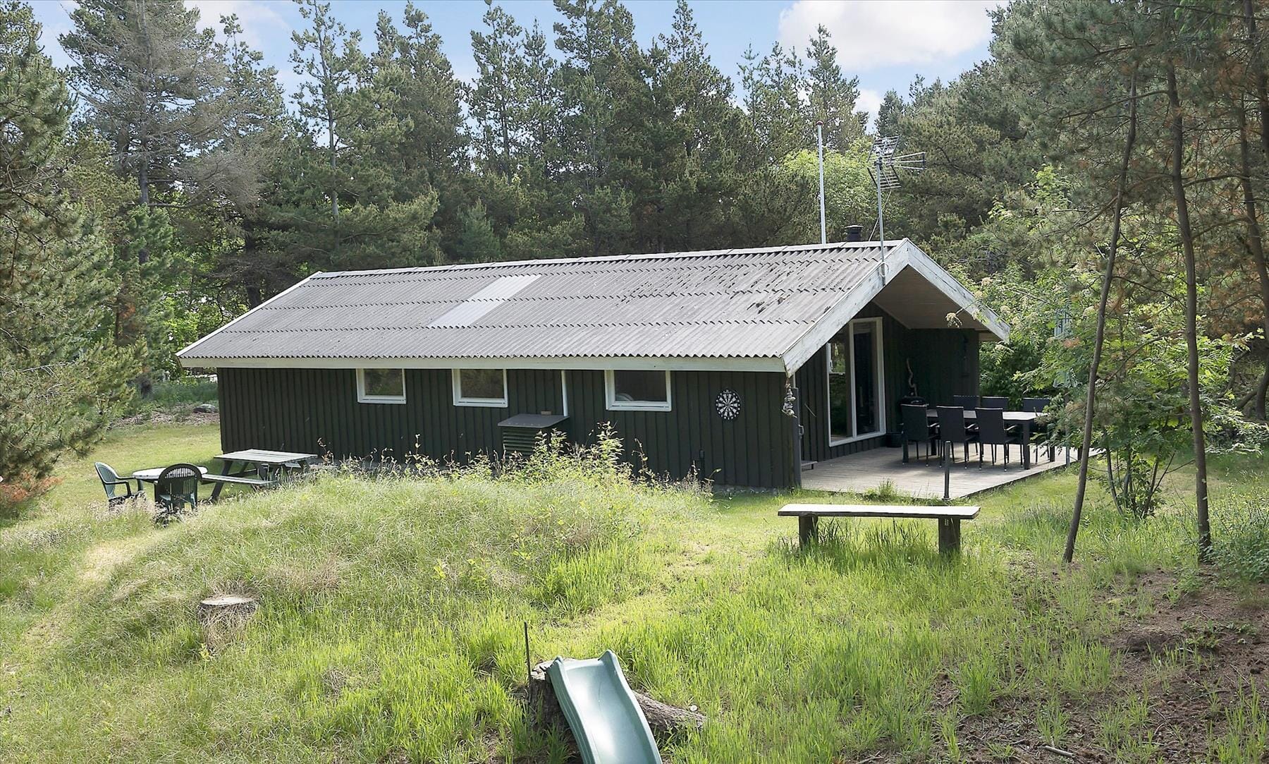 Huset ligger fredeligt og naturskønt på en stor, grøn grund i Sdr. Fjand – kun en kort gåtur fra det brusende Vesterhav. Her kan I starte dagen med en kop kaffe på den delvist overdækkede terrasse, tage på lange gåture i klitterne eller bare nyde solen, mens børnene leger på græsset. Når dagen går på hæld, er terrassen det perfekte sted at samle sig til aftensmad og se solen gå ned over landskabet. Den store grund indbyder til leg, ro og fordybelse – et fristed midt i naturen, hvor I kan mærke, hvor godt det gør at koble helt af.