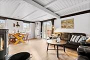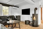 Når I træder ind ad døren, mødes I af et lyst og indbydende feriehus, hvor store vinduer lader dagslyset strømme ind. Det åbne køkken og stue skaber en hyggelig ramme for samvær – her kan I nyde hinandens selskab, mens maden simrer på komfuret. Huset har to soveværelser, ét i stueplan og ét på førstesalen, så I har mulighed for at trække jer tilbage. Ovenpå finder I også en ekstra stue, der giver mulighed for ro eller hyggelige stunder for dem, der ønsker det. Tænd op i brændeovnen og mærk, hvordan varmen og flammernes skær spreder en særlig hygge i hele huset.