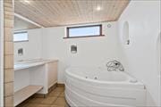 Allerede når I træder ind i huset, bliver I mødt af en lys og indbydende atmosfære, der straks får jer til at føle jer hjemme. Entréen giver adgang til gæstetoilet, trappe til underetagen og det store køkken/alrum, som er husets naturlige samlingspunkt. Her er der god plads til at lave mad, spise sammen og bare nyde ferien i hyggelige rammer. Fra alrummet er der direkte udgang til en skøn træterrasse, der forlænger opholdsrummet ud i det fri. På samme etage finder I et af husets soveværelser, mens underetagen byder på et rummeligt badeværelse med både bruser og spabad – perfekt til afslapning efter en aktiv dag. Her ligger også et ekstra soveværelse og et kontor, hvor der er plads til ro og fordybelse.