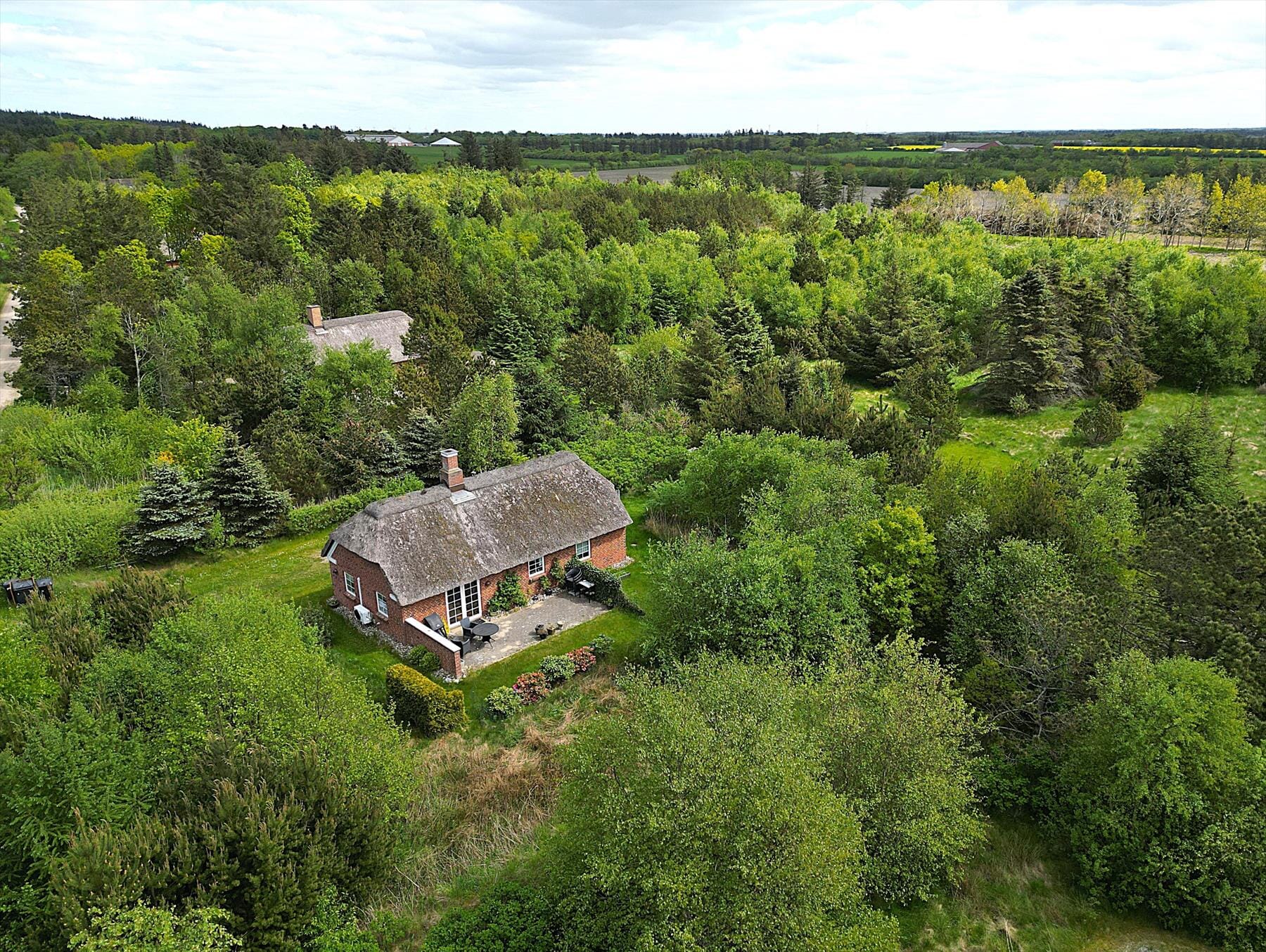 Haven omkring huset er stor og naturlig, omkranset af træer, hvilket giver en god afskærmning og privatliv. Her er både plads til afslapning og leg. De sydvestvendte terrasser giver gode muligheder for at nyde solen fra morgen til aften, og børnene kan trygt lege på grunden. Til glæde for både hund og ejer er terrassen indhegnet, så også familiens firbenede kan nyde opholdet trygt og frit. Spis aftensmaden ude, mens solen går ned og himlen farves i varme nuancer – det er en oplevelse i sig selv.