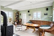 Landlig charme pryder dette skønne feriehus. Indenfor i huset bliver I mødt af en dejlig fornemmelse der bare emmer af ro, og roen bliver understøttet af de lysegrønne vægge i stuen. Når I kommer hjem efter en skøn gåtur i området, så tænd op for brændeovnen og nyd den dejlige varme og hyggelige knitrende lyd, imens I taler om hvad der skal udforskes i morgen. Opholdsstuen ligger i åben forbindelse med den hyggelige spisekrog og det veludstyrede køkken der bare kalder på kulinariske oplevelser for hele familien.