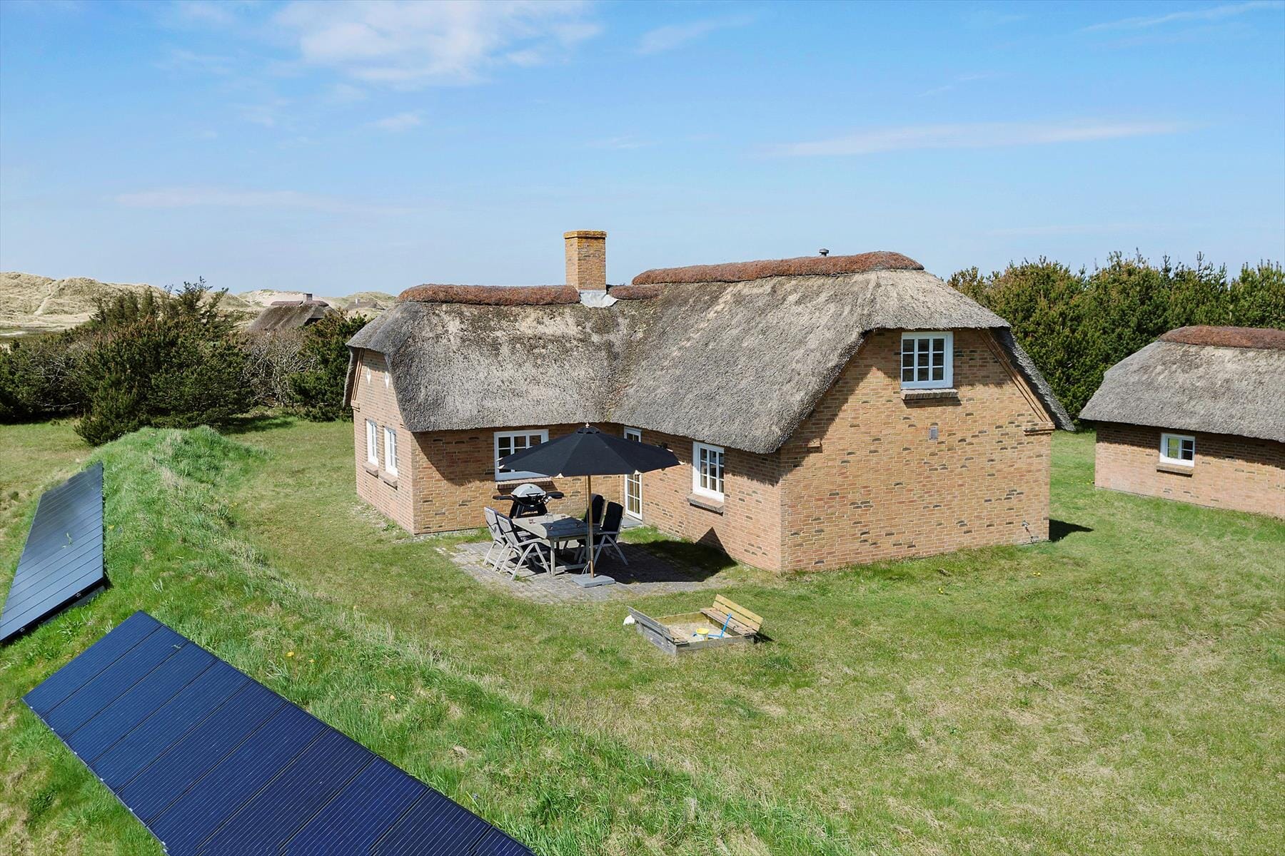 I kommer til at elske roen omkring huset, og det store udendørs areal, hvor legebørn store som små, kan give den gas. De mindste legebørn kan give sig i kast med at bygge sandskulpturer, og sandslotte i sandkassen. Der er også mulighed for I kan tage en afslapning på terrassen, og nyde en god familie middag, hvor I kan nyde udsigten til lyngarealet, og klitterne.