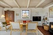 Når I åbner døren til dette sommerhus, træder I ikke bare ind i et rum, men ind i en stemning. Her er tid til ro. Til at finde hinanden. Til at sænke skuldrene. Stuen i stueplan byder sig til med varme og åbenhed — det er et sted, man naturligt samles. Her kan I synke ned i sofaen, lade samtalen flyde eller bare sidde stille og lytte til brændeovnens sagte knitren. Når ilden tager fat, og skyggerne danser på væggene, breder der sig en særlig fred, som kun findes steder, hvor man er helt væk fra hverdagens støj. Oppe på førstesalen bliver verden endnu større. Her åbner udsigten sig ud over klitterne — vilde, bølgende og smukke i al slags vejr. Om morgenen kan I sidde her med en dampende kop kaffe eller te, mens lyset langsomt løfter sig over landskabet. Her er det ikke nødvendigt at fylde tiden — her er det nok bare at være.