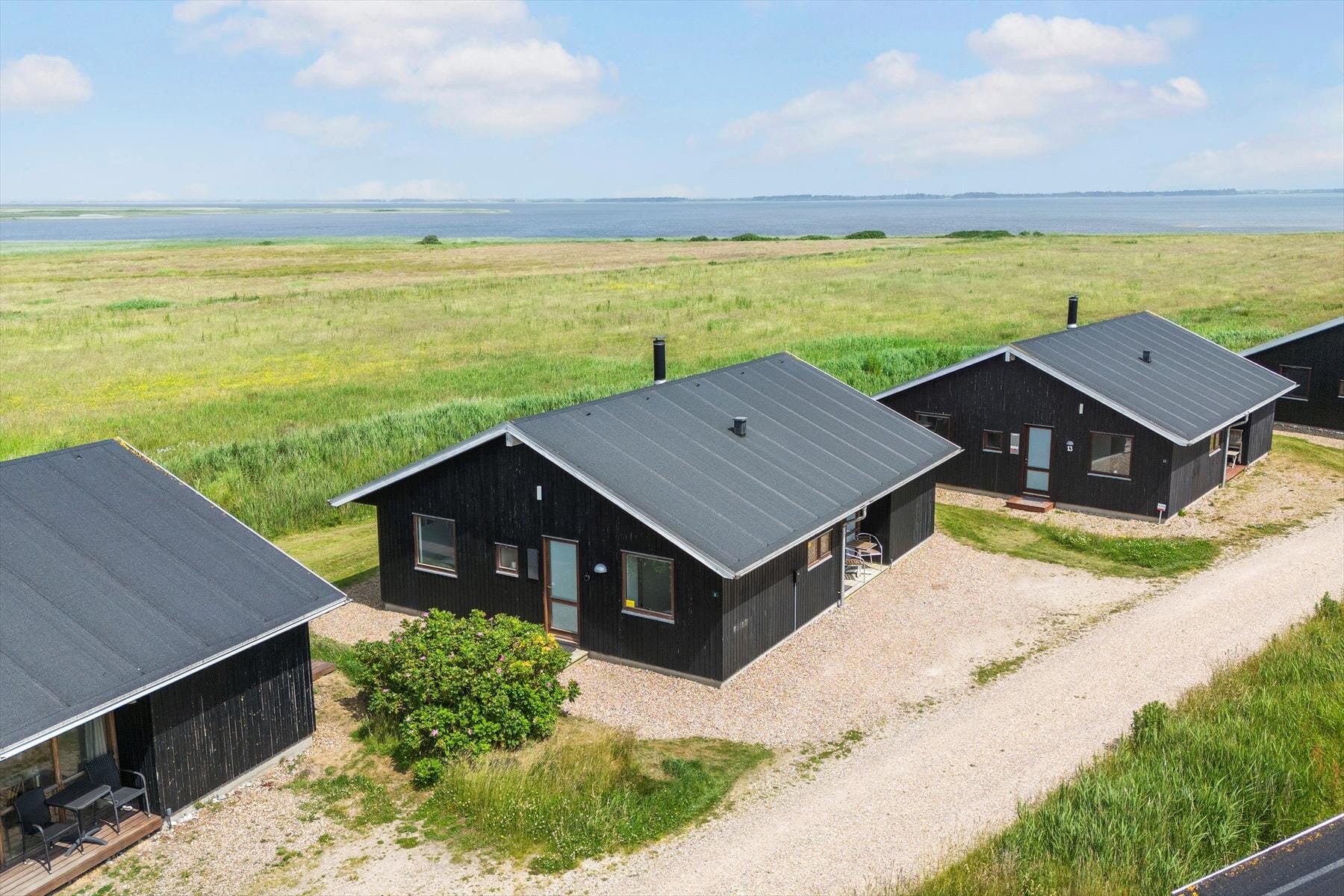 Den østvendte terrasse byder på morgensol og en stille start på dagen. Nyd kaffen under åben himmel, læs en bog i loungemøblerne eller slap af med udsigt til grønne omgivelser. Terrassen indbyder til både ro og samvær – et ideelt sted til morgenmad under åben himmel eller en afslappet frokost i skyggen. Når dagen går på hæld, er det oplagt at tænde op i grillen og nyde aftenen i det fri – omgivet af naturens lyde og den friske luft.