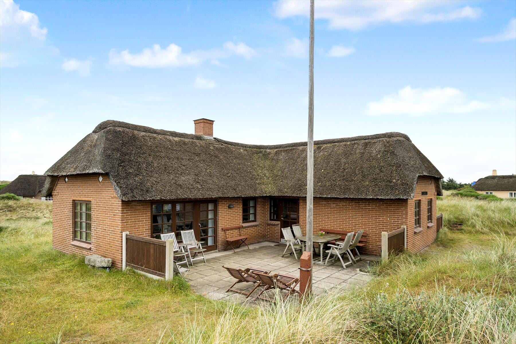Nyd det skønne udendørsområde og lad roen sænke sig over jer, på grunden er der god plads at boltre jer på om det er med boldspil eller leg er helt op til jer. Med kun 300 meter til Vesterhavet får I en fantastisk udsigt ud over klitterne, og i forårs- og sommermånederne er der på stien til stranden udlagt gummimåtter, så det er nemmere, også for gangbesværede, at nå til vandet. Sæt jer ud på den store sydvendte terrasse og nyd den smukke solnedgang bag klitterne.
