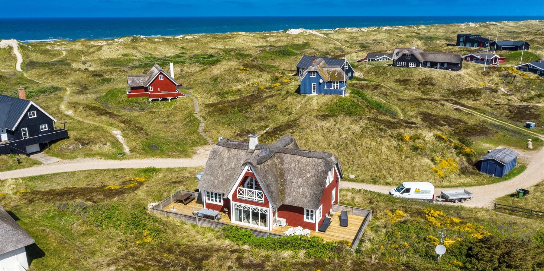 Hus-ID: VE240Dette imponerende sommerhus er indrettet til 8 personer og ligger på en klitgrund, ca. 100 meter fra stranden. Stue med brændeovn, fjernsyn med parabol og chromecast. Trådløs internetadgang. Køkken med opvaskemaskine, køle/frysekombination og spisekrog. 3 soveværelser med hver 1 dobbeltseng. Badeværelse med bruser/wc, standvandsspa, sauna, vaskemaskine og tørretumbler. På 1. sal: 1 soveværelse med 2 enkeltsenge. Badeværelse med bruser/wc. Stue med fjernsyn og parabol. Stor lukket terrasse med udsigt over klitterne. Klimaanlæg. Rygning er ikke tilladt. Byggeår 2002.