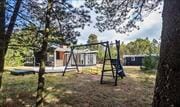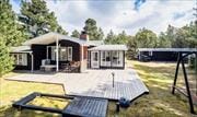 På den dejlige, store grund er der masser af plads til børn, leg og opdagelser mellem græsplæne og træer — et sikkert rum til gemmeleg og hulebyggeri. Terrassen byder på flere siddekroge, så familien kan sprede sig og finde sin egen favoritplads gennem dagen; de grønne beplantninger skærmer af og skaber privathed, så udearealet føles som en rolig oase. Den nemme adgang fra stuen gør det enkelt at glide mellem inde- og udeliv, og aftenluften fyldes af fuglesang og duften af klitplanter, hvilket forstærker feriestemningen.