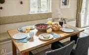 Træd ind i et hjem hvor designet taler sit eget sprog: rene linjer, gennemførte materialevalg og et interessant rumforløb mellem etagerne. Køkkenet med kogeøen er huset hjerte — her kan flere deltage i madlavningen, mens duften af friskbagt brød eller grillmaden spreder sig. Ved spisebordet fanger det store vindue dagslyset og rammer en næsten postkortagtig udsigt, så måltiderne får en særlig ro og nærvær. Stuen ligger en etage oppe og rummer flere hyggelige hjørner, men samlingspunktet er uden tvivl sofaen ved det store vindue, hvor man kan skimte Vesterhavet i horisonten og lade tankerne vandre. To elegante badeværelser fordelt på begge etager giver privatliv og komfort, og materialer og belysning er valgt med fokus på ro og kvalitet — perfekt til afslapning efter en dag ved vandet.