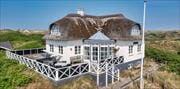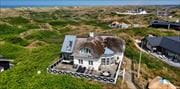 Huset hviler på en klitgrund, der omkranser hele ejendommen og skaber følelsen af at smelte sammen med naturen. En træterrasse strækker sig langs to sider af huset, hvor du kan fange morgensolen eller finde læ til eftermiddagskaffen. Derudover er der en særlig terrasse på et lavere niveau, anlagt på en gammel bunker midt i klitlandskabet. Den høje beliggenhed med trappeopgang giver fine udsigtspunkter, og det er kun en kort, stemningsfuld gåtur ned til stranden, så daglige dukkert- eller kystvandringer er lette at få ind i programmet. Udebruseren lige udenfor gør det nemt og dejligt at skylle sand og salt af efter en forfriskende svømmetur i Vesterhavet.