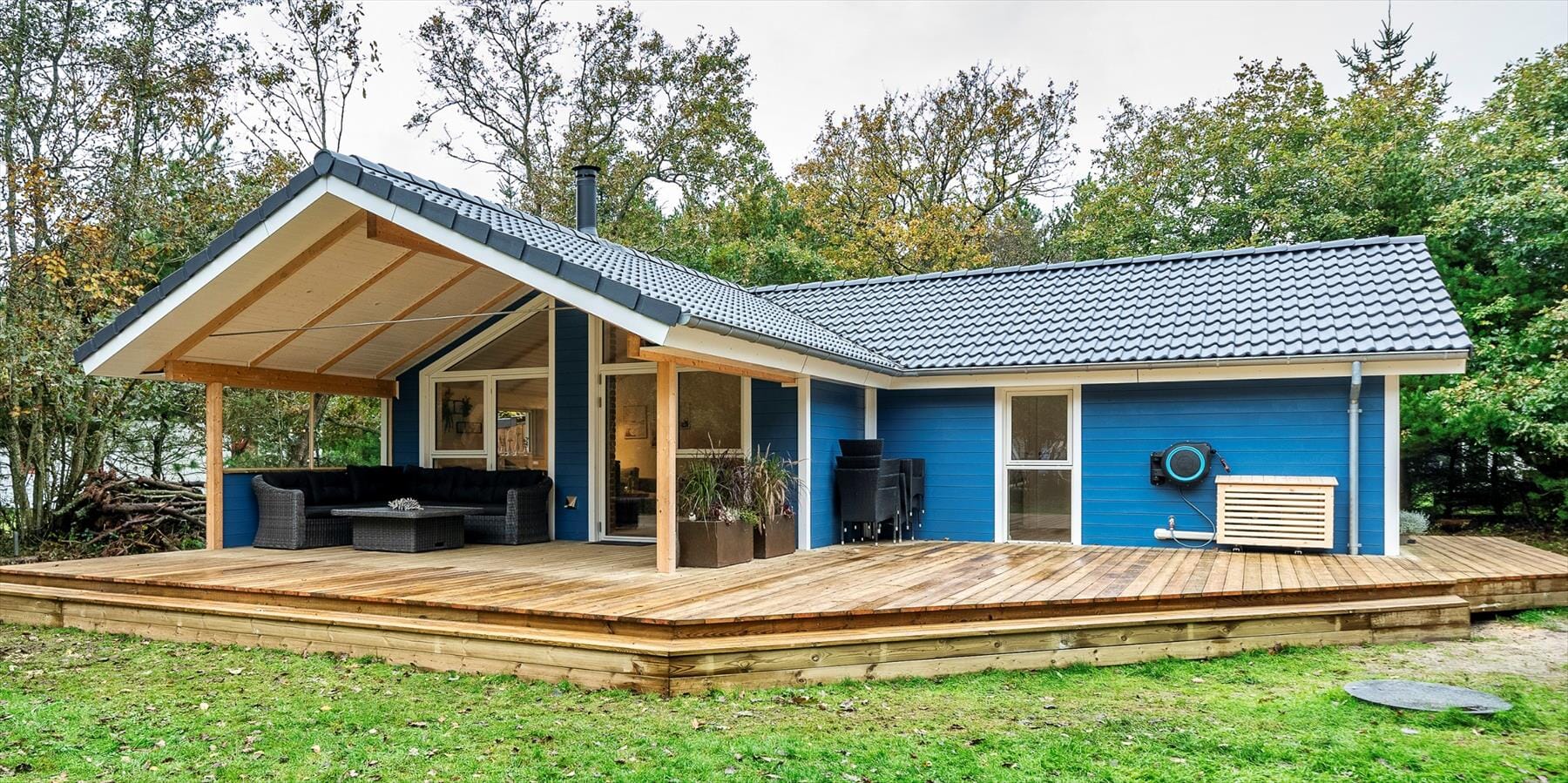 Sommerhuset: Entre med plads til garderoben. Huset råder over 1 dejligt badeværelse med vaskemaskine. Stort køkkenalrum og stue ud i et samt med god spiseplads. Fra stuen er der udgang til den overdækkede træterrasse. Køkkenet fremstår med alt komfort såsom opvaskemaskine, mikroovn, kogeplade, emhætte og køle-/fryseskab. Dejlig opholdsstue med brændeovn, Smart-Tv, Bluetooth højtaler og trådløs internetadgang med god dækning (1000/1000 fiber). Huset har i alt 3 soverum. 1 soveværelse med 1 DS/dobbeltseng (160 x 200), 1 soveværelse med 1 KS/køjeseng (80 x 200) og 1 soveværelse med DS/¾ dobbeltseng (140 x 200). Dejlig træterrasse-miljø med udendørs vildmarksbad og sauna. Dagene kan nydes fra morgen til aften på træterrassen med afslapning eller wellness.
