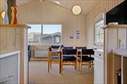 Sommerhuset er indrettet i en lys og charmerende stil, der oser af dansk hygge. Den åbne forbindelse mellem køkken og stue skaber en rummelig atmosfære, hvor familien kan samles om hyggelige middage eller afslapning foran fjernsynet. De store vinduespartier giver et smukt lysindfald og en dejlig udsigt til de omkringliggende klitter. Soveværelserne tilbyder rolige rammer for en god nats søvn, og badeværelset er praktisk indrettet med bruser. Uanset om du vil tage en pause fra strandlivet eller slappe af på en kølig dag, er sommerhuset den perfekte base for afslapning og hygge.