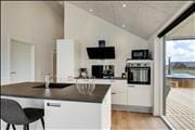 Sommerhuset emmer af lys og rummelighed, og indretningen er moderne og behagelig med højt til loftet og store vinduespartier, der inviterer naturen indenfor. Køkkenet ligger i åben forbindelse med spiseplads og stue, så det føles naturligt at samles til hyggelige stunder, uanset om I laver mad, spiller kort eller bare nyder en rolig stund foran tv’et. Badeværelset er indrettet som en lille wellness-oase med spa og sauna, og herfra er der direkte udgang til terrassen – hvilket gør det nemt at bevæge sig fra varme til frisk luft. Når det er tid til leg og konkurrence, venter aktivitetsrummet med både poolbord og bordtennis – her kan alle i selskabet være med, uanset alder og niveau.