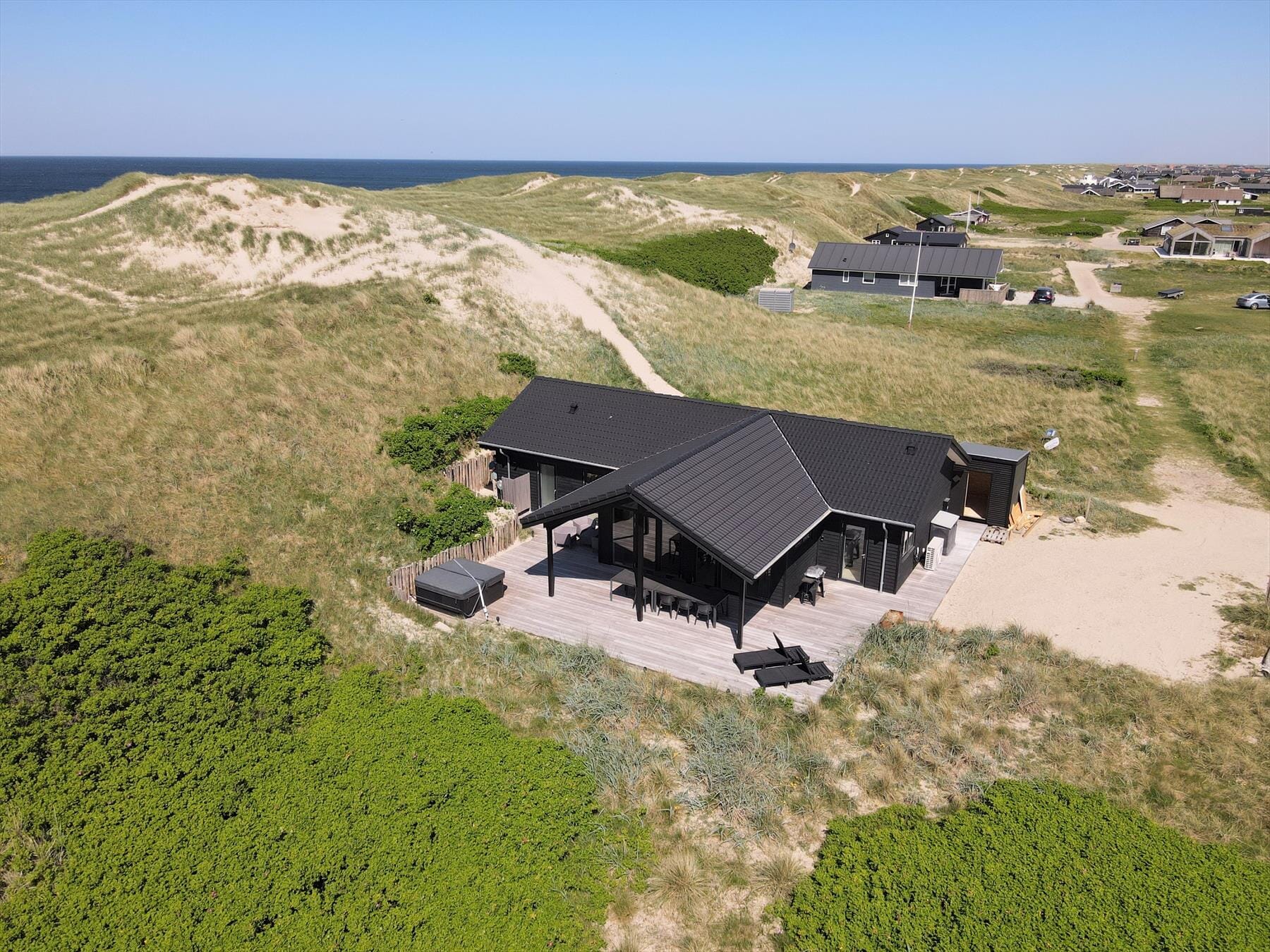 Moderne sommerhus med udespa i første klitrække – tæt på Vrist Strand