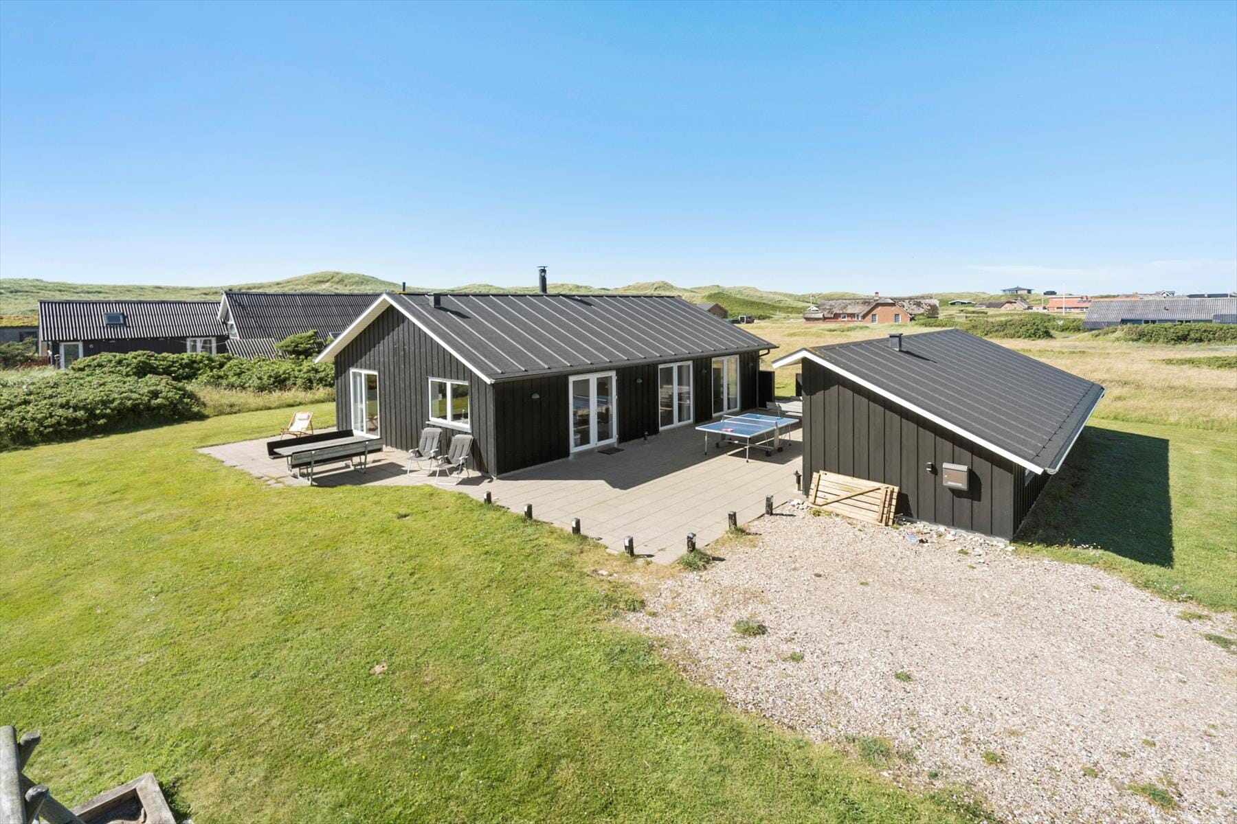 På den rummelige terrasse kan du nyde ferien i fulde drag. Her er der plads til afslapning, solbadning og lækre grillmiddage under åben himmel. Børnene kan lege på græsplænen, mens hunden trygt snuser rundt i de rolige omgivelser. Vil du opleve mere, ligger den fantastiske strand kun en kort gåtur væk. Her kan du tage en dukkert, gå lange ture eller nyde den magiske solnedgang over havet.