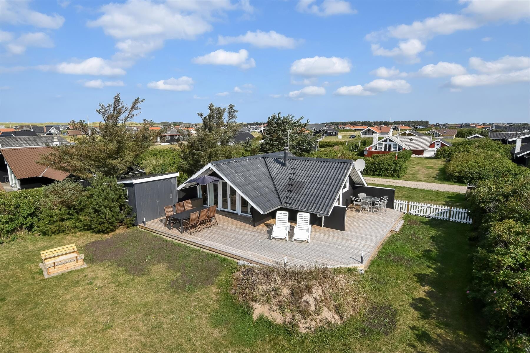 Beliggende midt i Vejlby Klit har sommerhuset en ideel placering for at udforske området. Kun 500 meter væk finder du den brede sandstrand ved Vesterhavet, hvor du kan mærke sandet mellem tæerne og lade bølgerne skylle ind over fødderne. En kort gåtur fører dig til det lokale supermarked og en hyggelig restaurant, som begge har åbent i sommerhalvåret, hvilket gør det nemt at handle dagligvarer eller nyde et måltid ude. For de mindste er der en nærliggende legeplads, hvor nye venskaber kan opstå, og energien kan brændes af. Området byder også på naturskønne stier, perfekte til gåture eller cykelture, hvor du kan opleve det unikke landskab omkring Ferring Sø og de imponerende klitter.