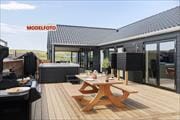 Udelivet får optimale betingelser på den store træterrasse, der breder sig omkring huset og både har åbne solspots og et dejligt overdækket hjørne til dage med lidt skyer. Den udendørs spa giver dig mulighed for at starte dagen med stille bobler og fuglesang eller slutte aftenen af med et glas vin under stjernerne. Der er god plads til både afslapning i liggestole, grillmiddage og leg for børn og firbenede familiemedlemmer – for her er op til to hunde velkomne. Grunden er oplagt til at nyde sommerens lange dage, og med Ferring Sø i baggrunden får du naturoplevelserne helt tæt på. Det her er et sommerhus, der lader dig komme helt ned i gear – uden at mangle noget.