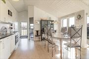 Når du træder ind i dette nyrenoverede sommerhus, mødes du af en lys og rummelig atmosfære. Den åbne planløsning forbinder køkkenet med den hyggelige stue, hvor brændeovnen spreder varme og skaber en afslappende stemning. De fire soveværelser er indrettet med komfortable senge, der sikrer en god nats søvn efter en dag fuld af oplevelser. Badeværelset byder på både spabad og sauna, hvor du kan forkæle dig selv og lade hverdagens stress forsvinde.