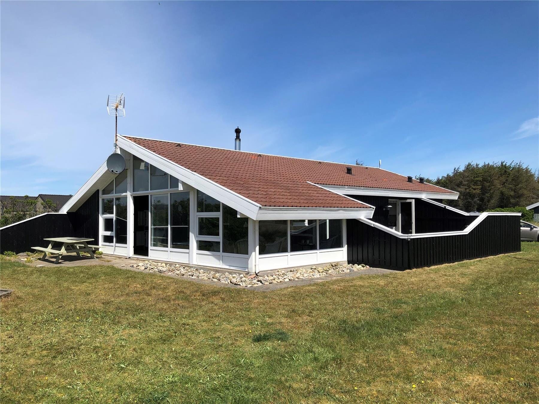 Sommerhusets terrasseområder er skabt til at nyde livet i det fri. Her kan du drikke morgenkaffen under åben himmel eller læne dig tilbage med en god bog i eftermiddagssolen. På den lukkede terrasse kan børn og hunde lege trygt, mens du griller aftensmaden og lytter til bruset fra Vesterhavet i baggrunden. Den rummelige have giver også mulighed for boldspil og leg for hele familien. Og når solen går ned, kan du nyde roen i det naturskønne sommerhusområde, der omgiver dig.