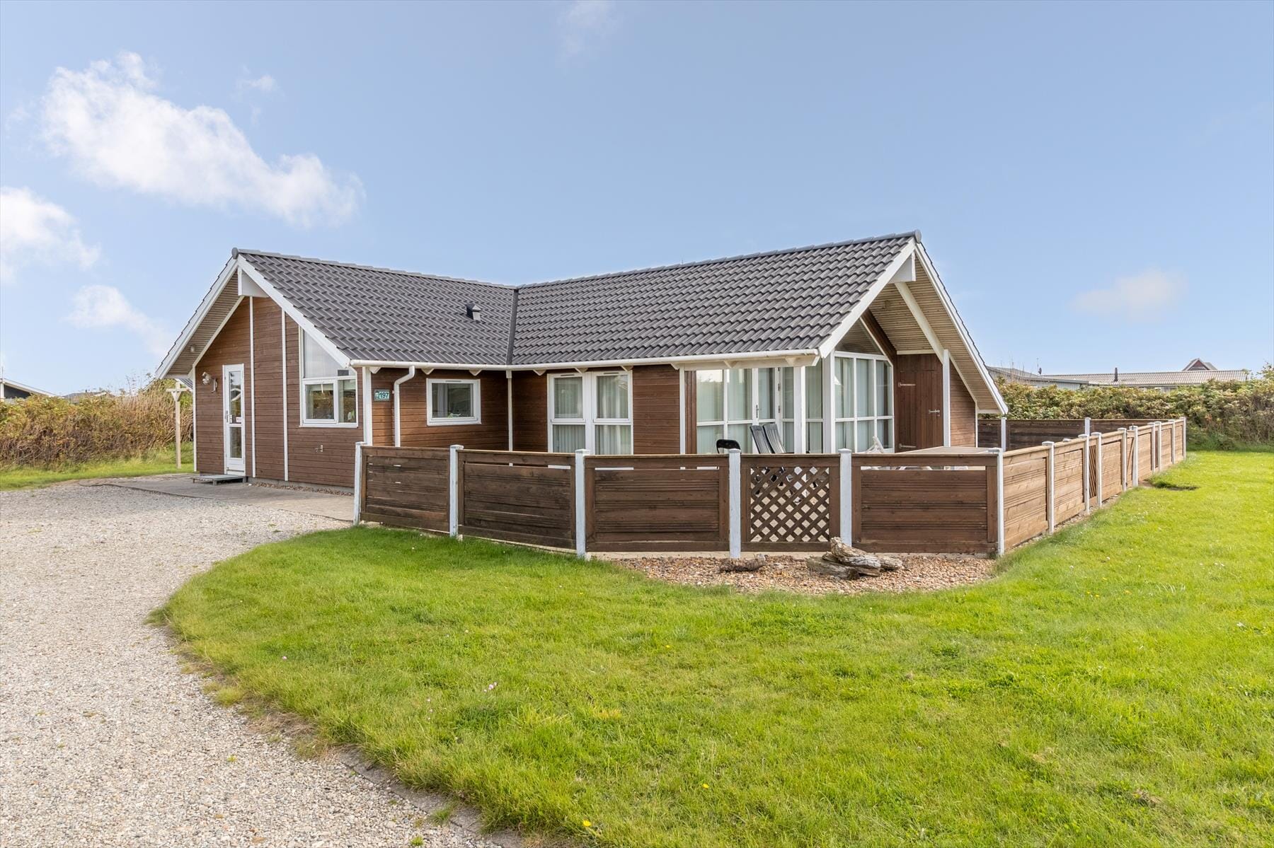 Haven er som skabt til familier med børn – her er både gyngestativ, sandkasse og vippe, så de mindste kan lege dagen lang i trygge omgivelser. Mens børnene suser rundt i haven, kan de voksne finde ro på terrassen, der ligger godt placeret omkring huset. Om morgenen kan du starte dagen med en kop kaffe i solen, og om aftenen er det oplagt at tænde op i grillen og nyde maden under åben himmel. Selv på kølige dage er det skønt at trække et tæppe om skuldrene og blive siddende udenfor – herude kan du høre havet i baggrunden og nyde duften af klitlandskabet. Alt sammen bare et par minutters gang fra vandkanten.