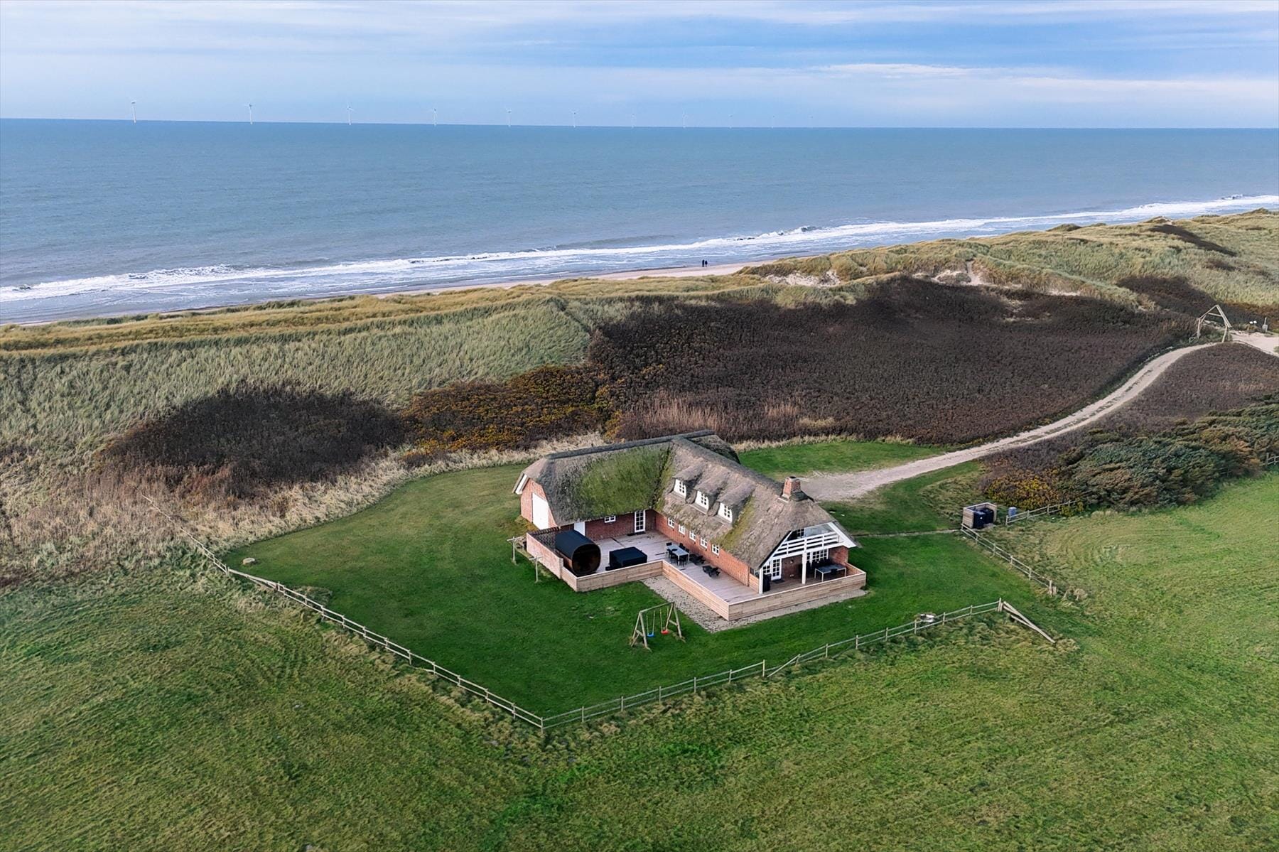 Udenfor folder det store ferieparadis sig for alvor ud. Den store grund giver rig mulighed for at nyde udelivet, hvad enten det handler om leg på græsset, stille stunder i liggestolen eller lange aftener omkring grillen. Den udendørs spa inviterer til afslapning under åben himmel, og når solen går ned over klitlandskabet, kan du nyde stilheden med varme bobler og frisk havluft omkring dig. For børnene er der god plads til leg og opdagelser, og da grunden har privat adgang til stranden, kan I nemt tage håndklædet under armen og gå ned til vandet – uden at møde andet end sand og klitter undervejs. Hunden er også velkommen og vil helt sikkert elske både grunden og de mange muligheder for gåture i det naturskønne område.