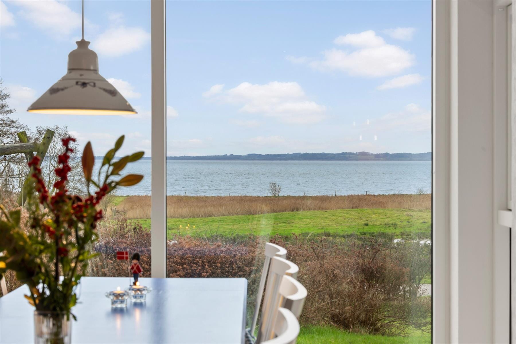 Indenfor mødes du af en lys, moderne og indbydende indretning, hvor rummene føles åbne og lette, og hvor dagslyset strømmer ind og fremhæver den afslappede feriestemning. Stuen er husets naturlige samlingspunkt, og her er det oplagt at slå sig ned med en kop kaffe, mens blikket glider ud over Limfjordens skiftende farver. Panoramaudsigten giver en særlig ro, som gør det let at koble helt af fra hverdagens tempo. Køkken og opholdsrum ligger i åben forbindelse, så samtalerne kan flyde frit, uanset om der bliver dækket op til fælles måltider eller spillet brætspil ved spisebordet. Når dagen går på hæld, kan du trække dig tilbage og nyde stilheden, der kun brydes af vindens susen og de dæmpede lyde fra naturen omkring huset.