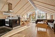 Velkommen indenfor: Huset emmer af hyggelig og behagelig atmosfære. Huset har i alt 4 komfortable soverum, 3 soverum med dobbeltseng og et værelse med to enkeltsenge. Huset har to badeværelser, det ene er stort med spa bad. Det åbne køkken er i kombination med stor opholdstue, og fra stuen er der udgang til terrassen og den omkringliggende have, hvor du kan være heldig at se nogle rådyr på tæt hold. Tænd også gerne op i brændeovnen på de køligere dage, og lad feriestemningen brede sig.