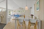 Velkommen indenfor: Indendørs finder du et lyst og hyggeligt åbent køkken, der sammen med spise- og opholdsstuen er perfekt til fælles hygge og gode måltider. Huset rummer to soveværelser: ét med en komfortabel dobbeltseng og et andet med to enkeltsenge, hvilket gør det ideelt både for par og mindre familier. Badeværelset er praktisk indrettet med bruser, toilet og vask. Sommerhusets indretning er meget lys og indbydende, hvilket skaber en dejlig rolig atmosfære.