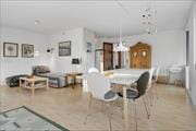 Velkommen indenfor: Indenfor bliver du mødt af et funk­tio­nelt køkken, som åbner op til en rummelig og lys vin­kel­stue. Her er der plads til fa­mi­lie­hyg­ge og stuen har direkte udgang til haven og terrassen.