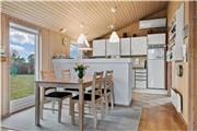Feriehuset som er fra 2005 er indrettet med kombineret køkken og opholdsstue. Lyst Køkken med flisegulv, keramisk komfur, køleskab med fryser og opvaskemaskine. Bryggers med mikroovn og vaskemaskine Opholdsstue med loft til kip, udgang til delvis overdækket terrasse, hyggelig spisekrog, sofa, lænestol, TV med danske DR kanaler og parabol med tyske kanaler. Badeværelse med bruseniche og gulvvarme. Tre soveværelser. To med dobbeltsenge og et med Køjeseng (70x190). Huset opvarmes med varmepumpe og elvarme.
