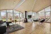 Fe­ri­e­hu­set in­de­hol­der kom­bi­ne­ret køkken og op­holds­stue. Køkken med indbygget ovn, ko­ge­pla­der, op­va­ske­ma­ski­ne, mikroovn, køleskab med fryser og gulvvarme. Op­holds­stue med udgang til stor terrasse, god spi­se­plads, brændeovn og tv med Waoo fri­tids­hus tv pakke. Badeværelse med bru­se­ni­che og gulvvarme, Bryggers med va­ske­ma­ski­ne. Tre soveværelser, to med dob­belt­sen­ge og et med en dobbelt sovesofa. Huset opvarmes med var­me­pum­pe, brændeovn og elvarme.