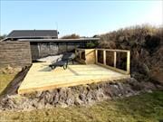 Totalrenoveret, stråtækt sommerhus med læfyldt træterrasse i Søndervig